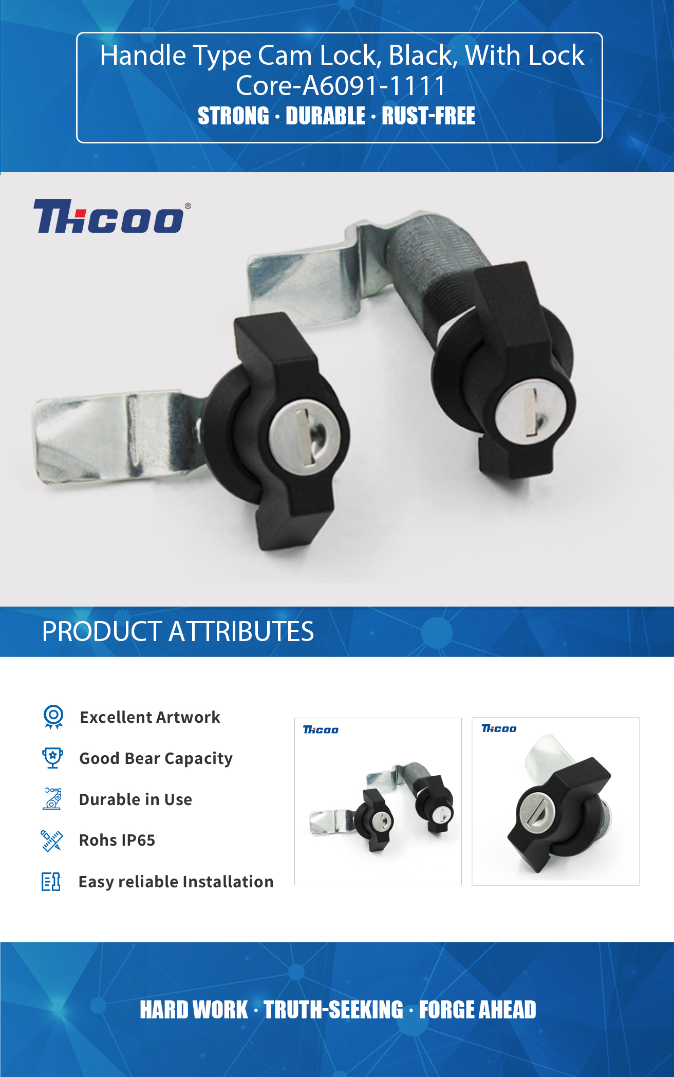 Kunci Cam Jenis Pemegang, Hitam, Dengan Teras Kunci-A6091-1111